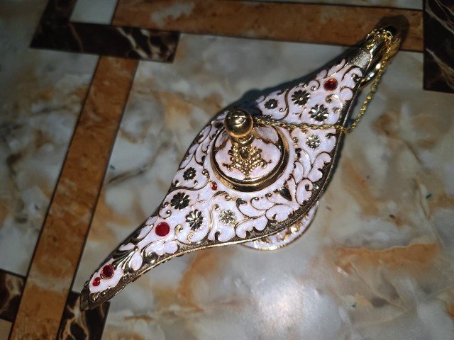 আপনার ঘরের ড্রয়িং রুম বা শোপিস কর্নারকে রাজকীয় রূপ দিতে নিয়ে এল Aladdin’s Magic Lamp Big Size Showpiece। আরব্য রজনীর সেই কালজয়ী আলাদিনের চেরাগের আদলে তৈরি এই শোপিসটি আপনার অন্দরসজ্জায় যোগ করবে আভিজাত্য এবং প্রাচীন ঐতিহ্যের ছোঁয়া।